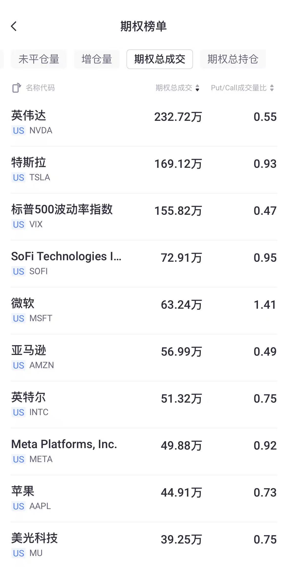 二、期权成交总量TOP10