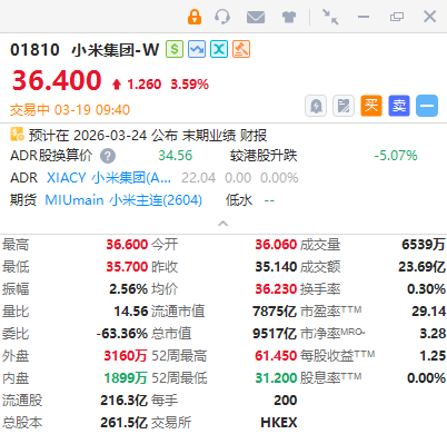 华盛资讯3月19日讯,港股新能源车股部分逆势走高,小米集团-W涨超3%,消息面上,SU7春季发布会今晚来袭;