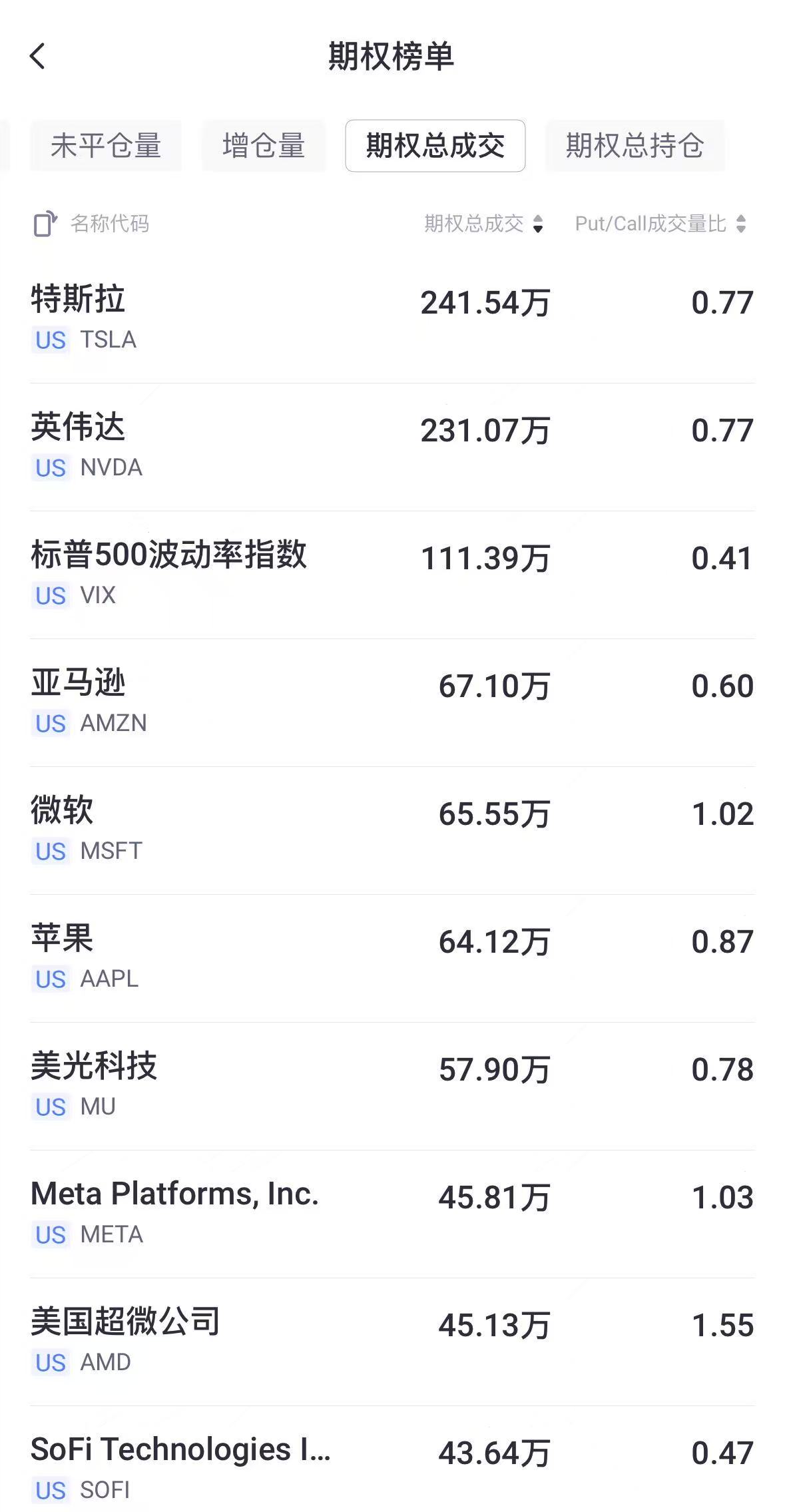 二、期权成交总量TOP10