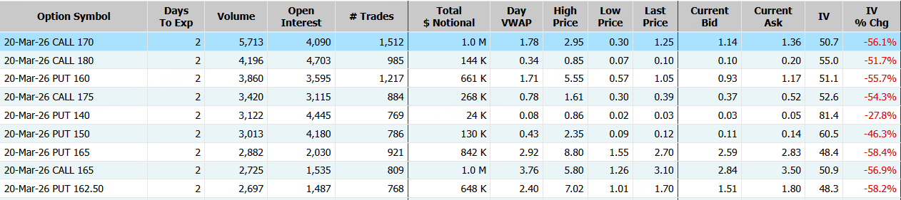 Lululemon隔夜涨近4%,期权合约成交11.75万张,较90日均量放大2.6倍。3月20日到期的170美元的行权看涨期权交易量特别高,共有5,713份合约交易。
