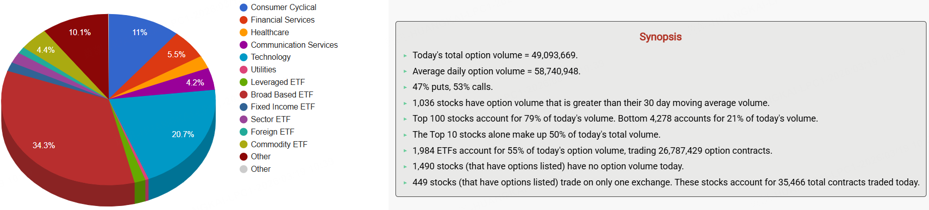 期权市场总成交量49,093,669张合约,其中看涨期权占比53%。