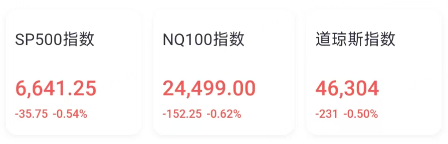 美光科技 跌超5%。第二财季营收增近两倍,指引大超预期,但高额支出计划引担忧。同时,存储概念普跌, 闪迪 跌超5%, 西部数据、希捷科技跌约3%。