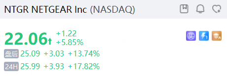 通讯设备公司Netgear盘后涨近14%,美国联邦通信委员会(FCC)近日宣布,将禁止进口部分新款外国制造的消费级路由器,此举被视为对国内厂商的利好消息。