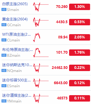 相关标的: $NQmain 、 $ESmain 、 $YMmain 、 $BZmain 、 $CLmain 、 $GCmain 、 $SImain