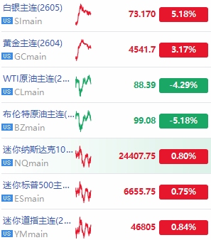 相关标的: $NQmain 、 $ESmain 、 $YMmain 、 $BZmain 、 $CLmain 、 $GCmain 、 $SImain