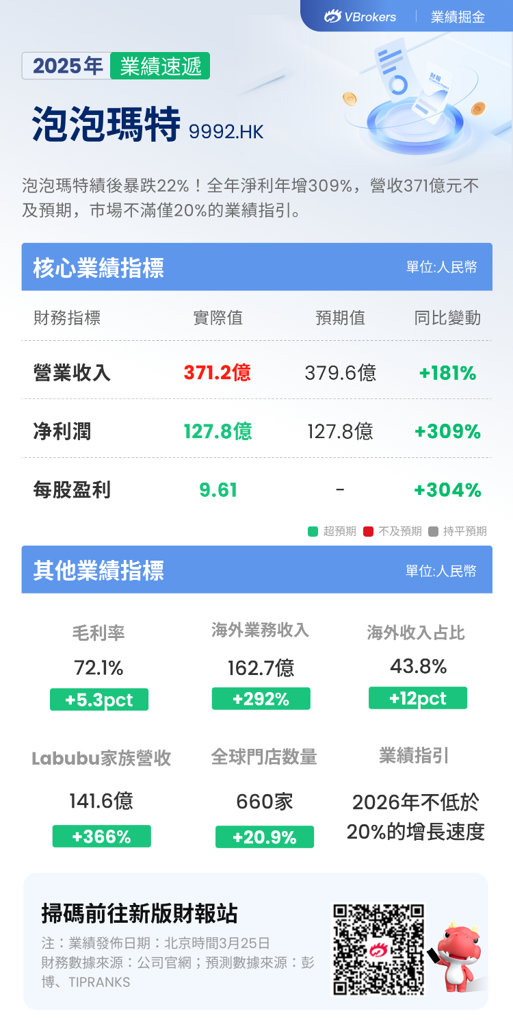 此外,虽然公司全年业绩大体符合市场预期,LABUBU等IP表现强劲,但市场对单一爆款IP的热度能否持续、公司能否持续打造新爆款仍存疑虑。