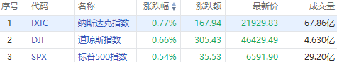 市场期待冲突降级,美股三大指数集体收涨,纳指涨近0.8%;SpaceX交表传言引发太空股狂欢,PL涨超10%,回声星通信涨逾7%;半导体股走强,英特尔、AMD均涨超7%