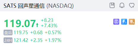 持有SpaceX股票的回声星通信续涨近2%,上一日收涨7.43%。