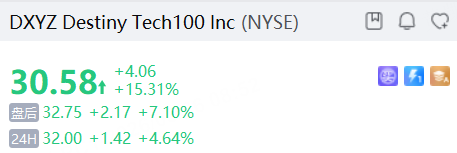 “SpaceX概念基金”Destiny Tech100夜盘续涨4%,上一日收涨超15%。