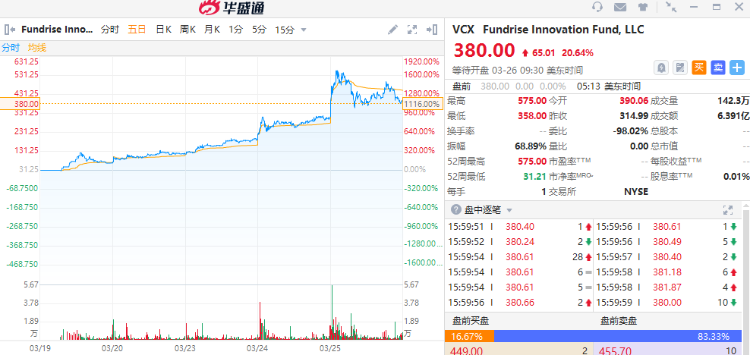截至发稿,上周四登陆美国纽约证券交易所的Fundrise创新基金( $VCX )再涨超20%,最新报价达380美元,上市以来已经狂涨超1000%!