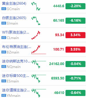 相关标的: $NQmain 、 $ESmain 、 $YMmain 、 $BZmain 、 $CLmain 、 $GCmain 、 $SImain