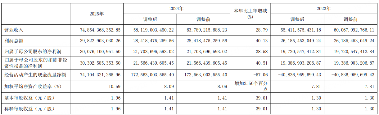 3月26日,中信证券公告,公司2025年实现营业收入748.54亿元,同比增长28.79%;归属于母公司股东的净利润为300.76亿元,同比增长38.58%。本报告期利润分配预案:每10股派发现金红利人民币4.10元(含税),此预案尚需本公司股东会批准。此外,公司已在2026年2月派发2025年中期现金红利每10股人民币2.90元(含税)。本报告期合计拟派发现金红利每10股人民币7.00元(含税)。