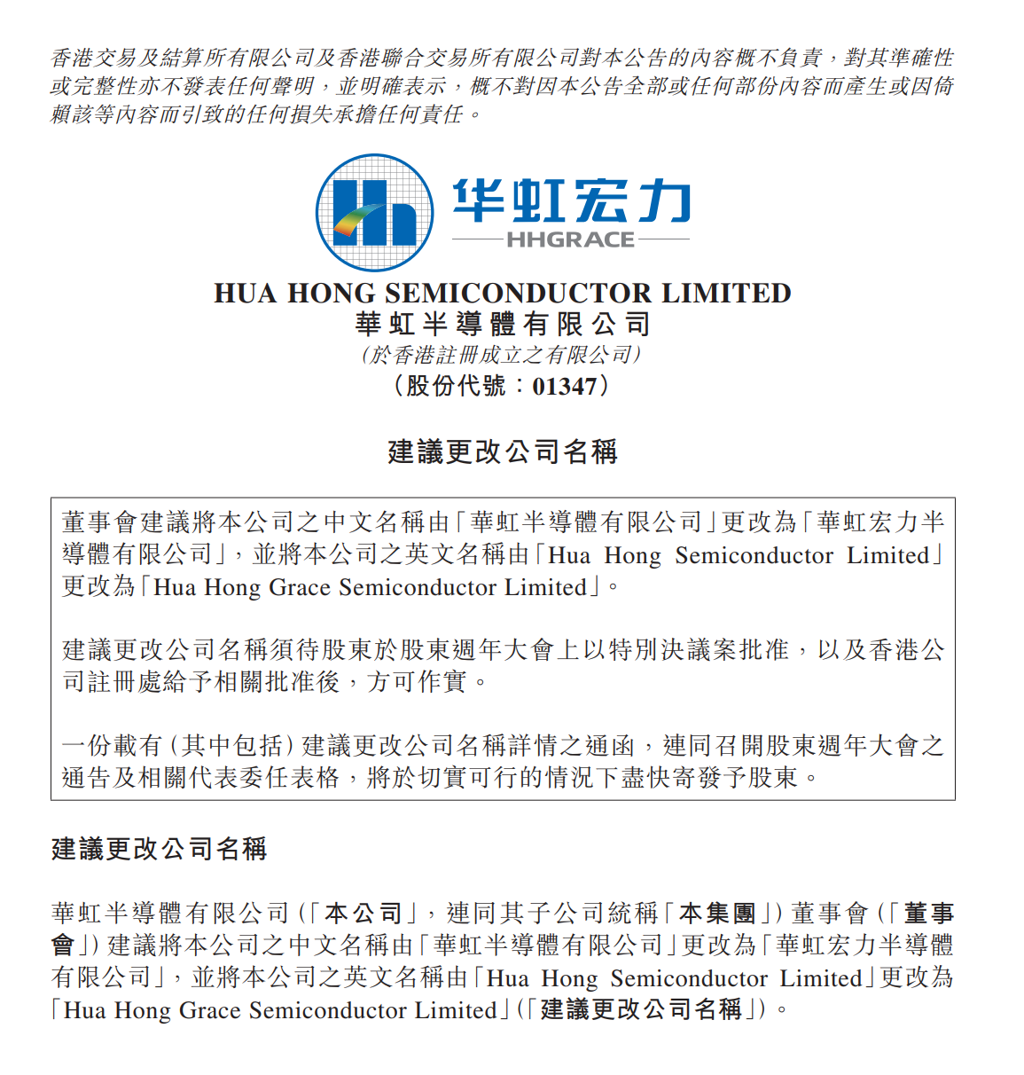3月26日,华虹半导体有限公司(华虹公司:688347.SH;华虹半导体:01347.HK)拟变更公司名称为“华虹宏力半导体有限公司”,变更证券简称为“华虹宏力”,证券代码保持不变。以上变更待有关单位批准后实施。