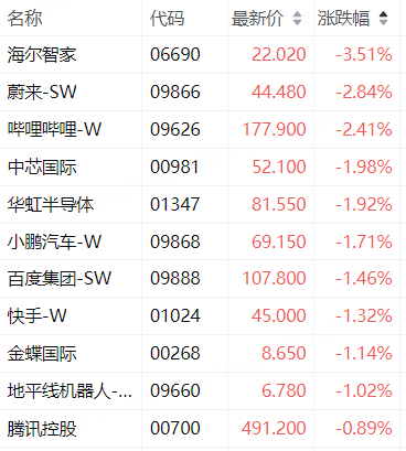 科指成分股中,比亚迪股份涨2.73%,海尔智家跌3.51%,蔚来-SW跌2.84%,哔哩哔哩-W跌2.41%,中芯国际跌1.98%。