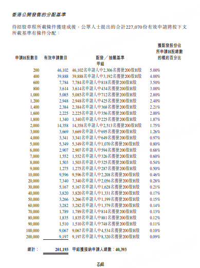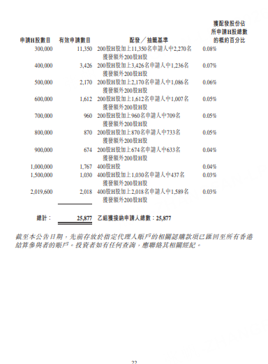 香港公开发售获 5059.38 倍超额认购,一手中签率仅 5%,投资者需认购 30 万股方可稳获一手;受回拨机制影响,公开发售股份比例由原定 5% 提升至 17.4%,对应股份数量增至 1615.7 万股,国际发售同样获得 16.65 倍认购。
