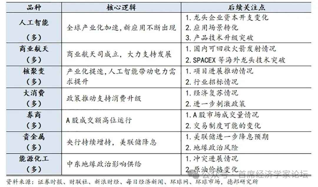 表1:近期热门品种梳理(括号内为近期趋势方向判断)
