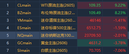 相关标的: $NQmain 、 $ESmain 、 $YMmain 、 $CLmain 、 $BZmain 、 $GCmain 、 $SImain