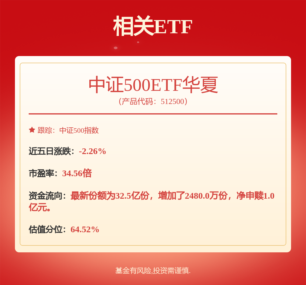 中证500ETF华夏(512500)紧密跟踪中证500指数,费率低廉、跟踪误差小,一键布局500只A股优质中型企业,高效分散风险、把握中小盘成长红利。