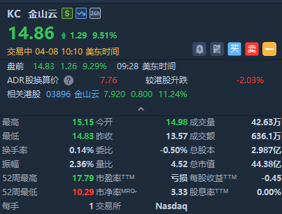 里昂此前发表研报指,金山云去年第四季业绩胜预期,受惠强劲人工智能(AI)需求带动,总收入同比增长24%。期内公有云服务收入同比增长35%。该行预测,金山云2026年收入将年增30%,较2025年的23%增速加快,主要由来自小米及非生态系统客户的持续AI需求推动。