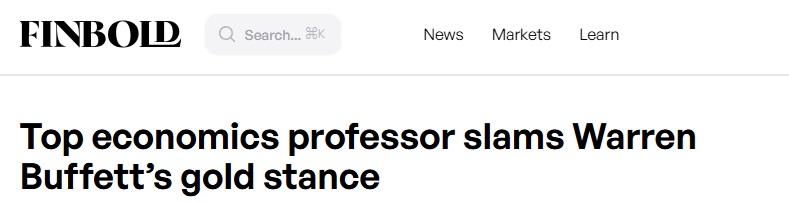 這位頂尖經濟學教授的評論是對巴菲特關於黃金是「非生產性資產」的著名觀點作出的迴應。