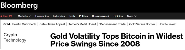自比特幣17年前誕生以來,黃金的波動性僅在兩次情況下更爲劇烈,最近一次是在去年5月,當時因美國總統特朗普(Donald Trump)的關稅威脅引發貿易緊張局勢。
