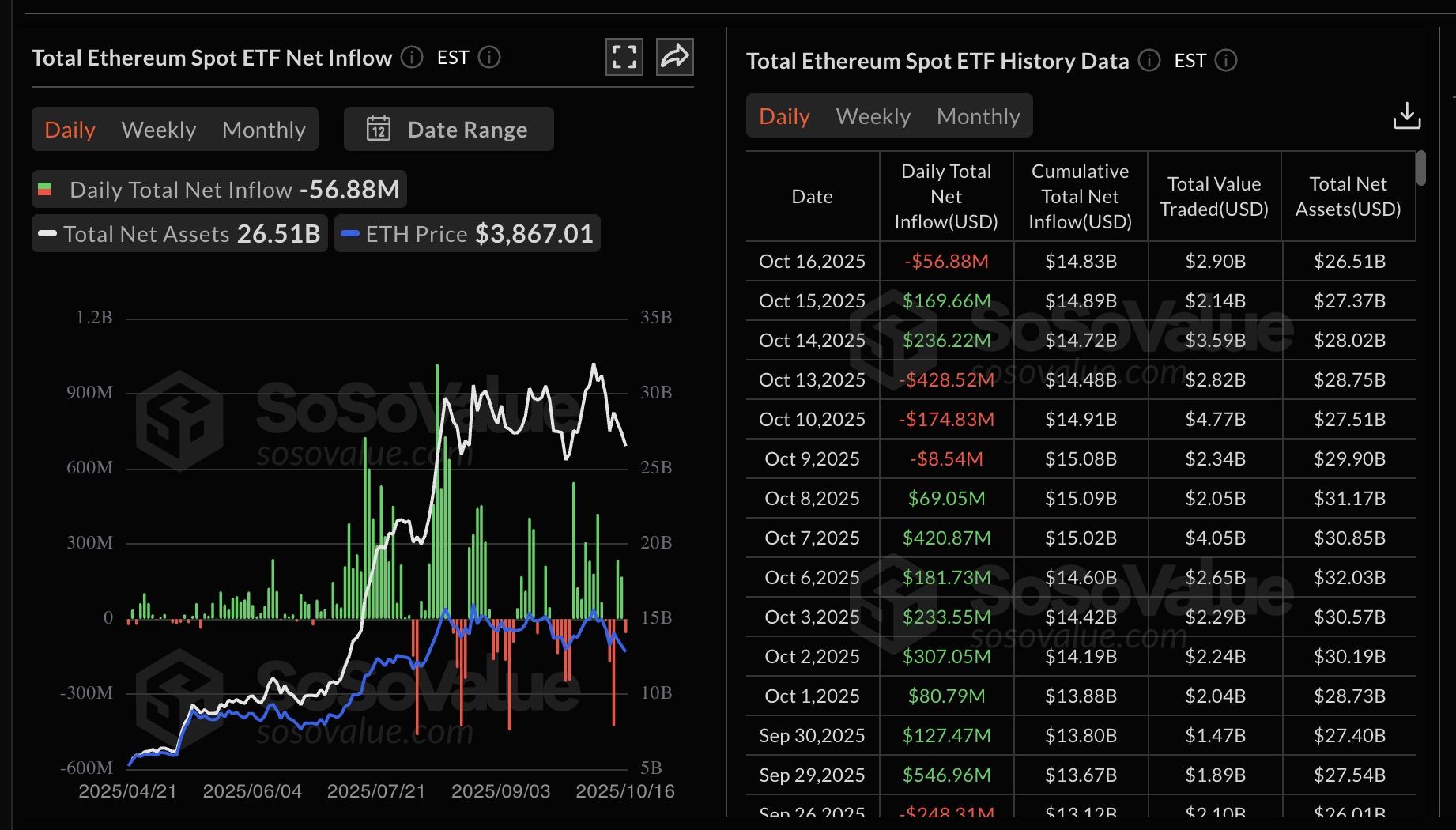 以太坊ETF統計 | 來源:SoSoValue