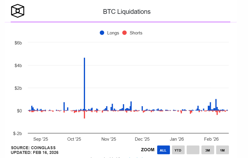 FX168財經報社(亞太)訊 在昨日衝擊7萬大關失敗後,週二(2月17日)比特幣繼續維持窄幅震盪,目前交投在6.8萬美元附近。儘管通脹數據降溫、鏈上指標暗示市場正在「悄然吸籌」,比特幣仍難以重新站上7萬美元。在宏觀層面獲得些許緩解的同時,市場結構性脆弱仍在掣肘行情。