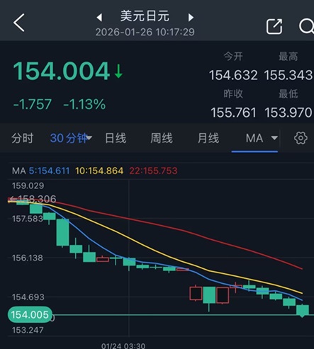 美元/日元目前跌至154.00關口,日內重挫175點。此前,日本首相高市早苗(Sanae Takaichi)週日向市場發出警告,且上週五出現跡象表明美國或將與日本聯手捍衛日元。日本股市下跌,日經225指數下挫1.9%;基準10年期國債走高。