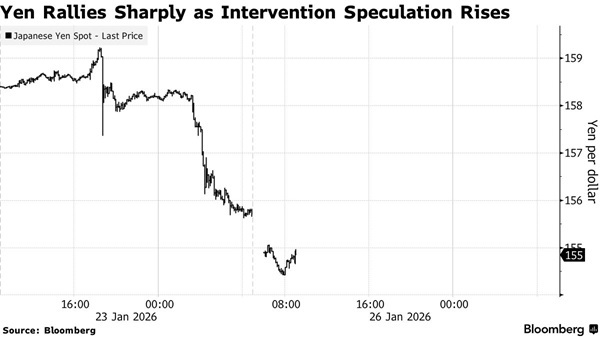 FX168財經報社(亞太)訊 日元週一(1月26日)亞洲市場盤中大幅走強,兌美元大漲逾1%,美國彭博社稱,交易員在本週伊始對日本可能出手干預市場保持高度警惕,因爲日元近期持續走弱。