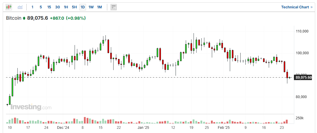 此輪跌勢部分緣於大型交易所ByBit近期遭遇15億美元駭客入侵。此外,經濟數據疲軟和關稅擔憂也拖累了比特幣,尤其是人們現在將比特幣視為風險資產。