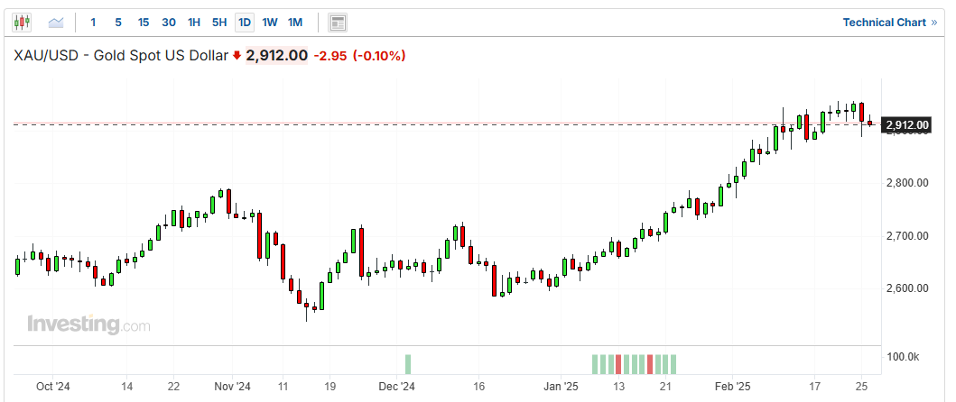 周三歐市,金價從歷史高位回落,小幅下探。但在美國關稅政策存疑和經濟增長令人擔憂的背景下,避險需求仍然旺盛。