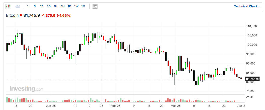另一方面,比特幣價格也跌至三周低位,下探至8.1萬美元區間。