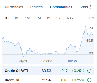 不過,油價微升,然而市場憂慮新貿易政策或影響經濟活動,油價或錄得季度跌幅。此前三周,油價連續上升,然而兩大基準油價仍可能出現兩季以來首次季度下跌。同時,石油輸出國組織及其盟友(OPEC+)將於4月起實施每月增產計劃。