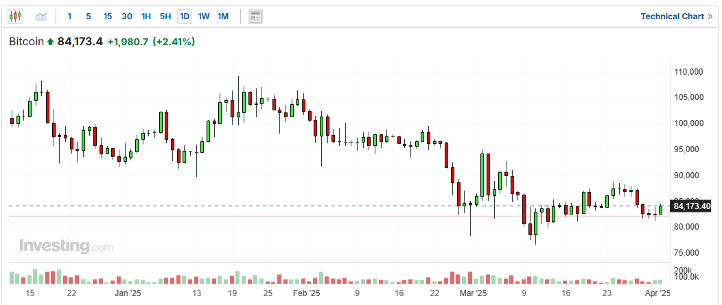 另一方面,比特幣走高,在全球最大加密貨幣首季下跌約11%後企穩,但特朗普關稅消息令市場情緒脆弱。