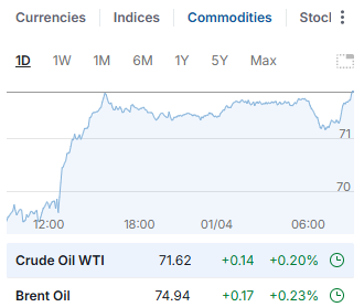 油價小幅上升,此前特朗普威脅對俄羅斯原油徵收間接關稅並抨擊伊朗,但市場擔憂貿易關稅或打擊全球增長,限制油價升幅。基準油價前日曾觸及五周高位。