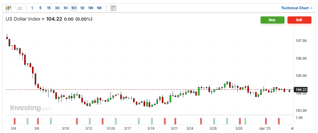 美元指數及美指期貨窄幅上升,市場聚焦特朗普對主要貿易夥伴的對等關稅計劃,以及對所有進口商品開徵普遍關稅的方案。