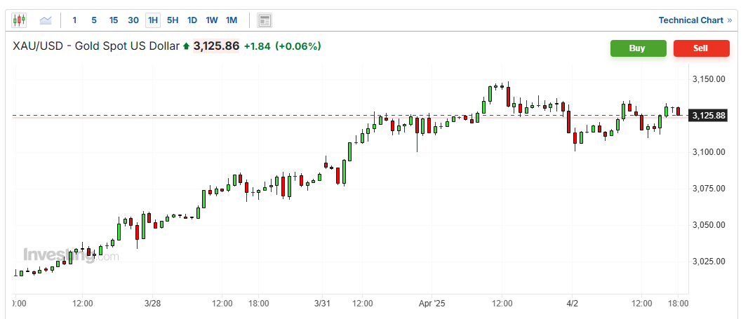 黃金此前連續四個交易日刷新紀錄高位,但交易員在特朗普發佈關稅當天轉趨謹慎,同時預計今日關稅政策公佈後波動可能較大。