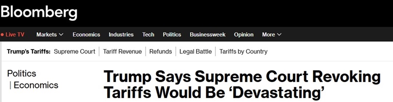 美國彭博社稱,如果最高法院裁定不利於特朗普,可能將迫使政府退還逾1000億美元的關稅,減輕美國進口商所承擔的沉重負擔,並削弱特朗普對貿易伙伴使用的主要經濟施壓手段。