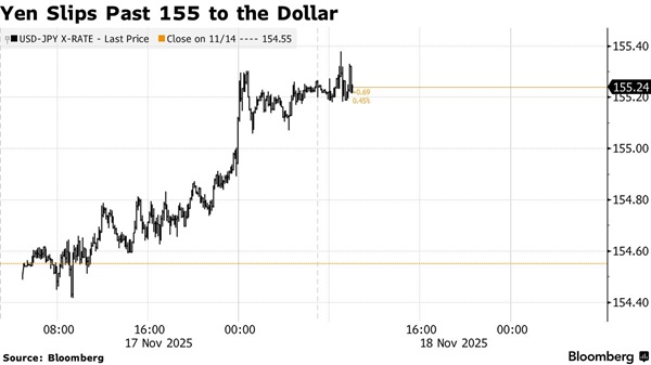 隨着日元兌美元在隔夜時段跌破155這一重要心理關口,片山皋月的警告隨之而來。日元跌勢加劇市場對政府可能進行干預以遏制進一步貶值的擔憂。
