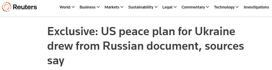 FX168財經報社(亞太)訊 英國路透社週三(11月26日)發佈獨家報道稱,根據三位熟悉此事的消息人士透露,上週公開的由美國支持的28點和平計劃,旨在結束烏克蘭戰爭,其內容參考了俄羅斯在10月提交給特朗普政府的文件。