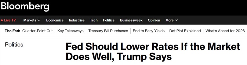 特朗普週二在社交媒體上發文稱:「我希望我的新任美聯儲主席在市場表現良好時下調利率,而不是毫無任何理由就摧毀市場。」