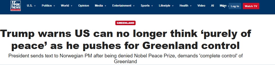 特朗普還重申美方要求控制格陵蘭島的立場。他寫道,丹麥無法保護那片土地免受其它國家的威脅,「而且它們憑什麼擁有所謂的‘所有權’?並不存在任何書面文件,只是幾百年前有一艘船在那裏登陸過而已,但我們也有船在那裏登陸過。」