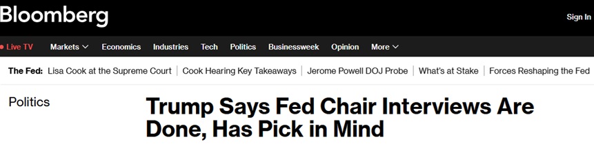 FX168財經報社(亞太)訊 美國總統特朗普(Donald Trump)週四(1月22日)表示,他已完成對下一任美聯儲主席候選人的面試,並再次強調自己心中已有合適人選。