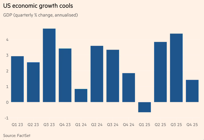 去年第四季度1.4%的GDP增速不僅低於分析師預期的3%,也使2025年全年增長率定格在2.2%,低於喬·拜登執政最後一年(2024年)實現的2.8%,更遠低於特朗普政府官員此前預估的3%。