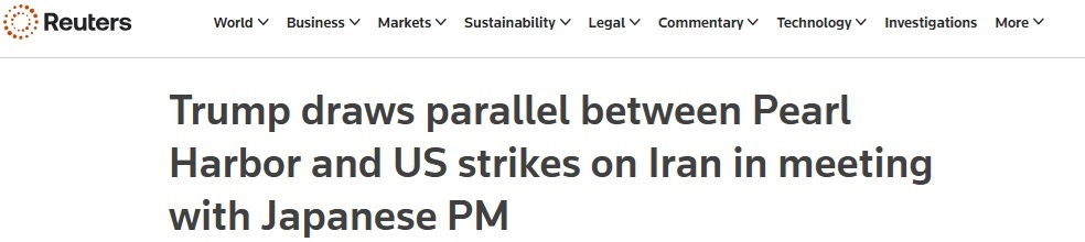 FX168財經報社(亞太)訊 英國路透社週五(3月20日)報道稱,美國總統特朗普(Donald Trump)週四在華盛頓與日本首相高市早苗(Sanae Takaichi)會晤時,爲其對德黑蘭發動的戰爭辯護,並將美國對伊朗的打擊與數十年前日本襲擊珍珠港相提並論。