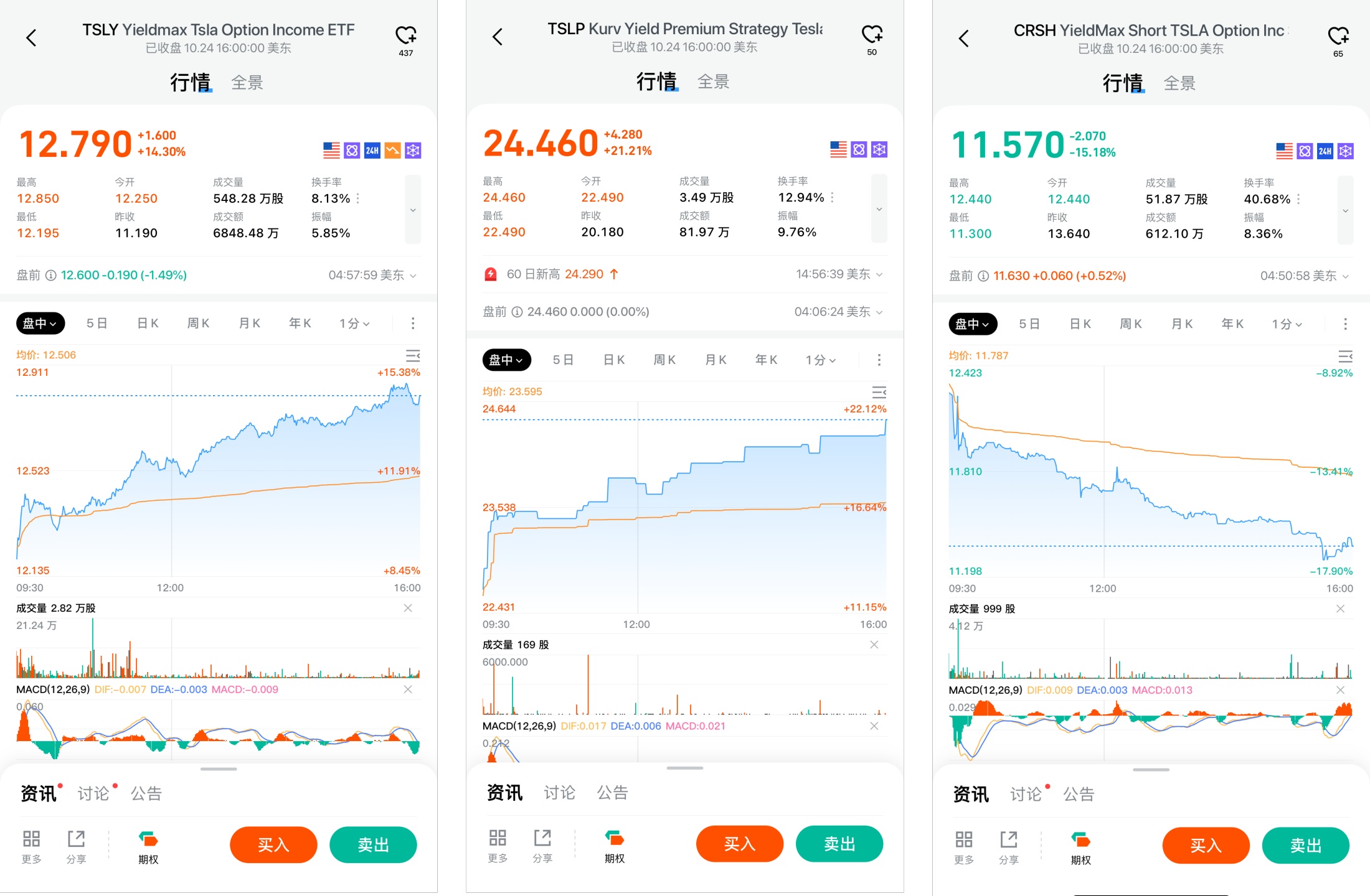 $Yieldmax Tsla Option Income ETF(TSLY.US) 、$Kurv Yield Premium Strategy Tesla TSLA ETF(TSLP.US) 爲擬合備兌看漲期權策略 ETF,該 ETF 會在買入正股的同時賣出 TSLA 價外看漲期權,由於賣出看漲期權會收取權利金, 因此此類 ETF 可以將部分收入分配給 ETF 持有者,在股價橫盤時提供部分收入、在下跌時提供有限的保護。