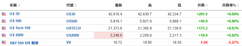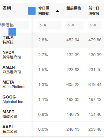 特斯拉(NASDAQ:TSLA)升2.8%。英偉達(NVIDIA)(NASDAQ:NVDA)升2.7%。其他七巨頭也多數上升。