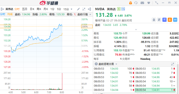 多隻業績股盤前異動,英偉達盤前拉漲逾3%,Snowflake績後大漲10%,賽富時跌超5%;加密貨幣股集體走高,微策略、Coinbase $COIN 漲超3%。