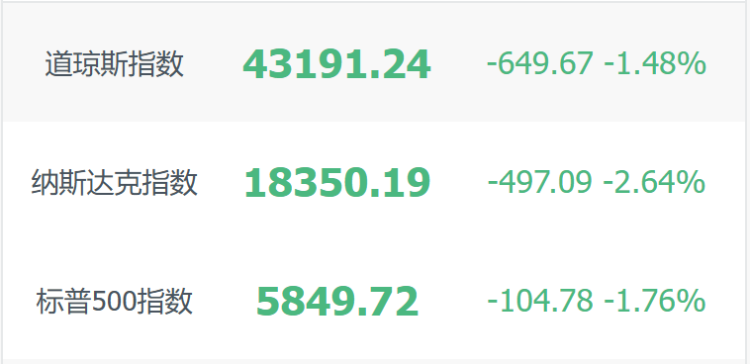 特朗普稱對墨加商品加徵25%關稅將於4日生效,美股三大指數集體收跌,道指跌1.48%,納指跌2.64%,標普500指數跌1.76%,恐慌指數VIX飆漲20%。大型科技股普跌,英偉達跌超8%,博通跌超6%,亞馬遜跌超3%,特斯拉、谷歌、微軟跌超2%。