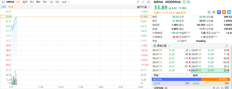疫苗製造商Moderna $MRNA 漲超11%,CEO增持500萬美元公司股票提振市場信心。